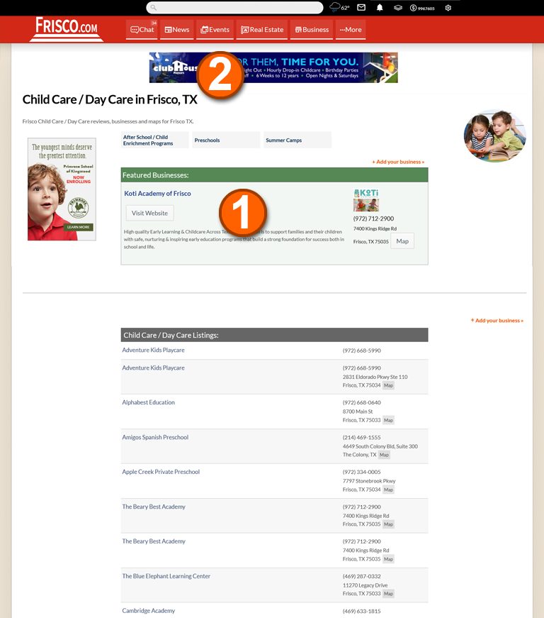 Bigger, bolder business directory listing located above all non-advertiser listings.