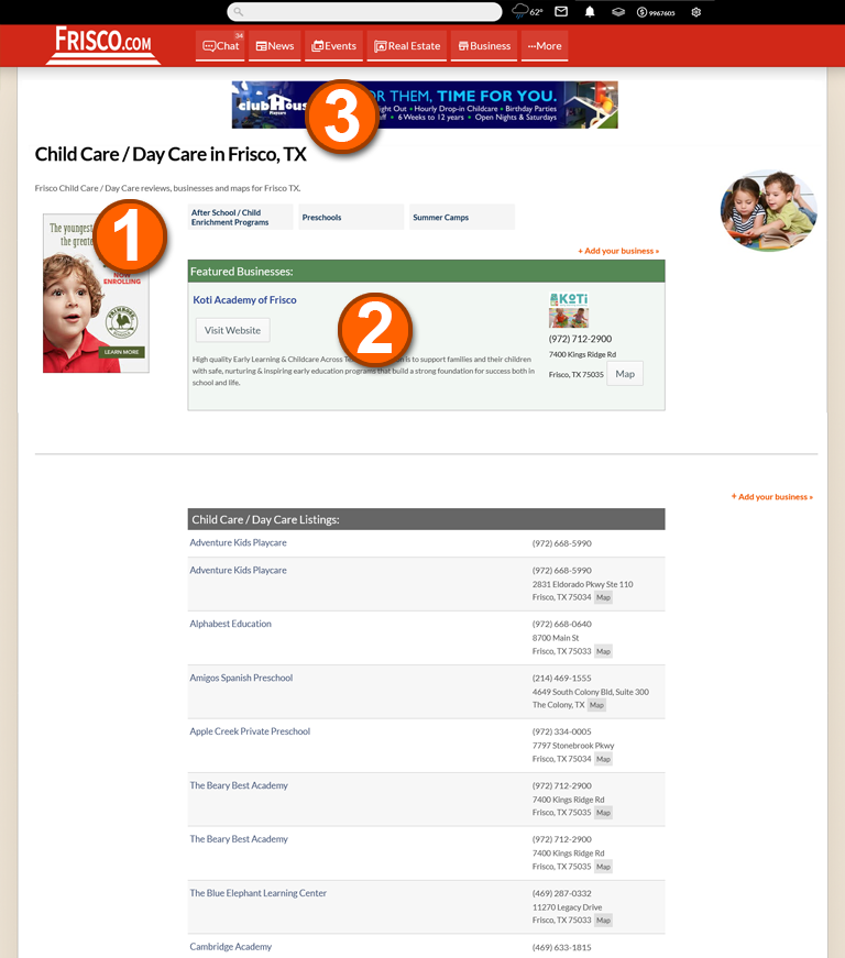 Bigger, bolder featured business directory listing located above all non-advertiser listings.