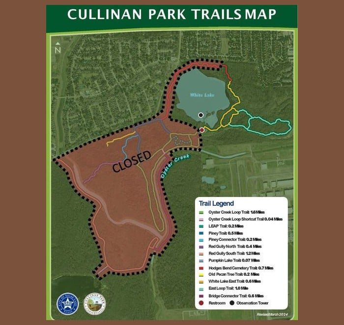 Sugar Land Parks and Recreation appreciates your patience as they work to protect our park’s natural beauty. For more details on the trail closures, please refer to the trails map.