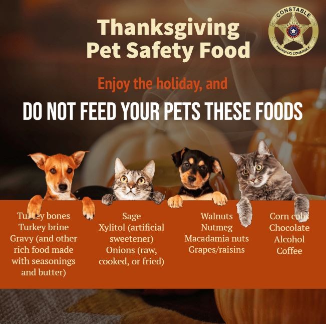 Constable Mark Herman's Office is sharing these safety tips to remind our pet owners to take proper precautions and make sure they are considering their pet’s safety when getting ready for and enjoying the holiday.