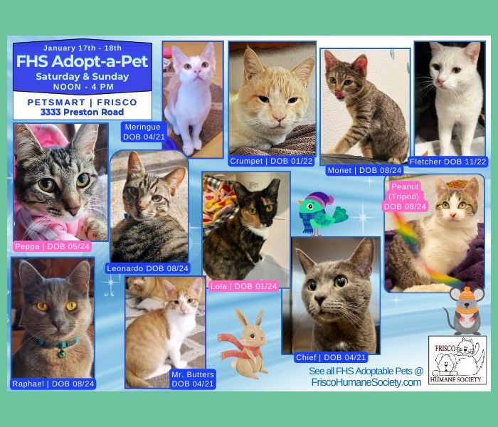 Meet your Purrfect Furever Kitty(s) at this weekend's FHS Adopt-A-Pet Event ~ Frisco's PetSmart [3333 Preston @ Warren]! Adoption Counselors will be on site Saturday & Sunday from Noon-4 p.m.
