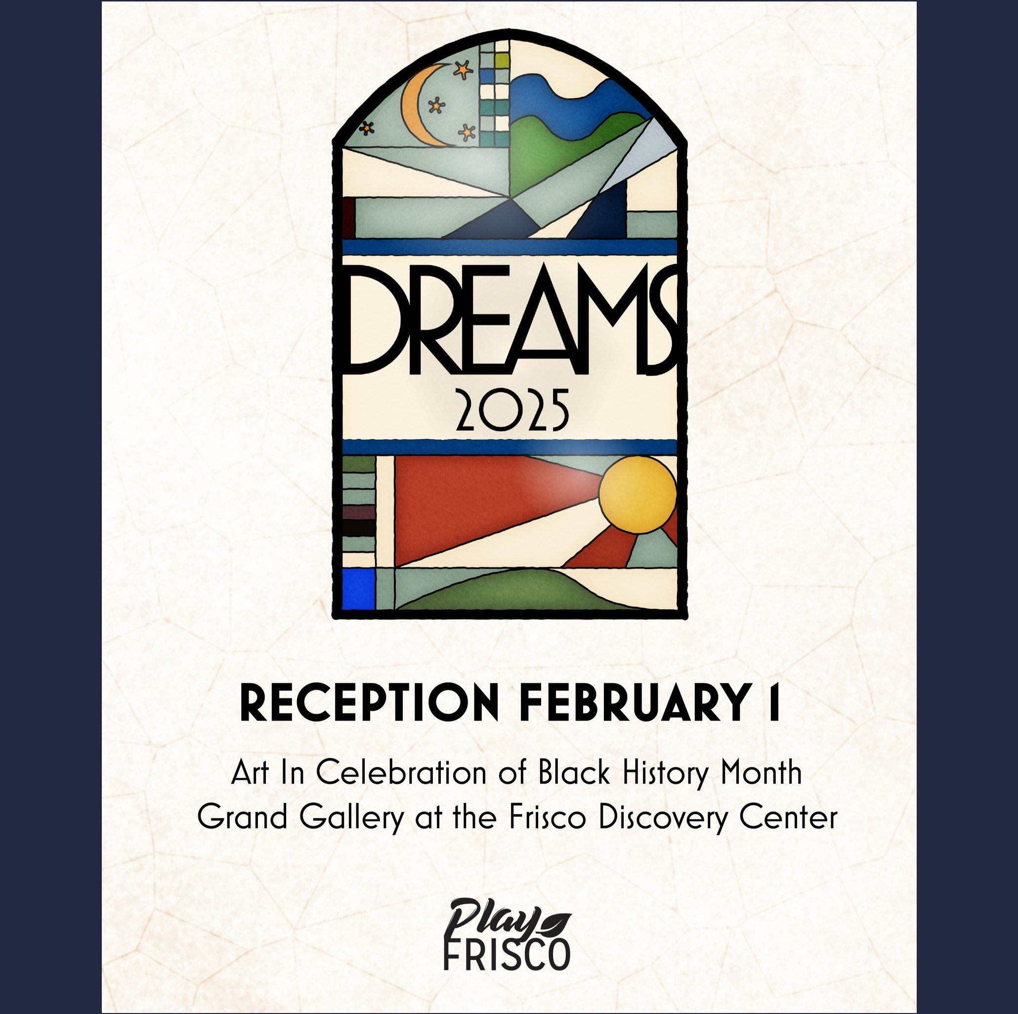 Join us on February 1 for the DREAMS 2025: Art in Celebration of Black History Month art exhibition reception at the Frisco Discovery Center from 6–8 pm.